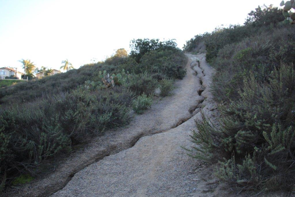 The caches were hidden along the trail about 150-200 meters apart. It took us two hours to walk all the way to Batiquitos Drive at the bottom. We found all of them but one and we could have found it but our presence was annoying a couple of dogs in a yard below the trail so we decided to leave it.
