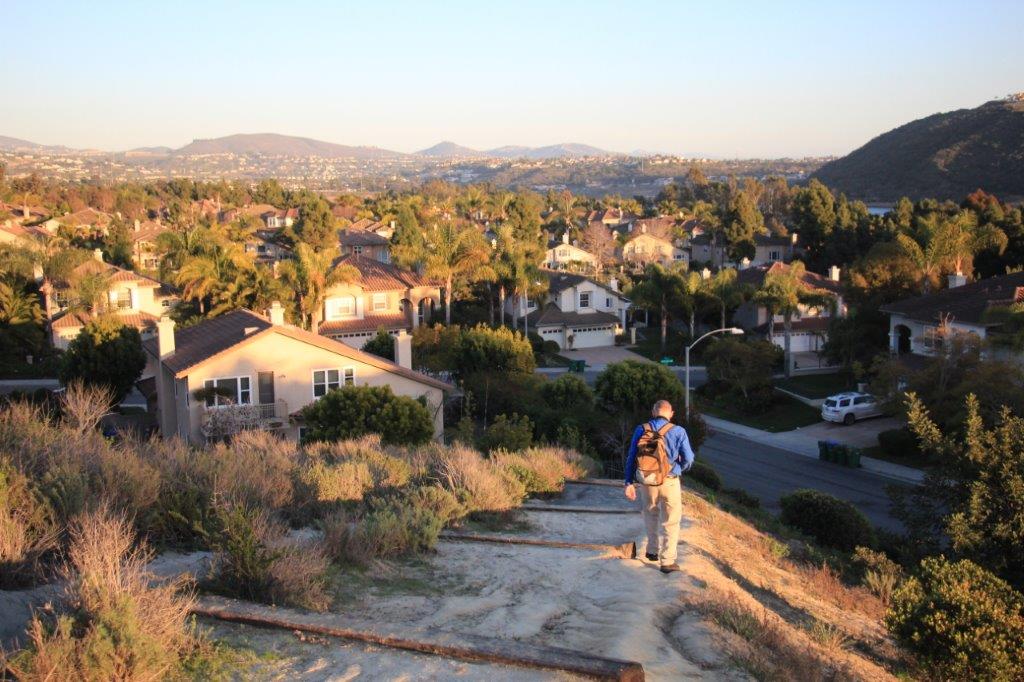 Today we decided to see how many we could find along a path that appeared to go from Poinsettia Lane down the hillside to Batiquitos Drive. Poinsettia Lane is about two kilometers from the condo and the trail, which we found out was called Eucalyptus Grove Trail, was another two kilometers down to Batiquitos. The entrance road to the resort complex is off Batiquitos Drive and then we had to climb a last kilometer back to our condo. So, we got some exercise today.