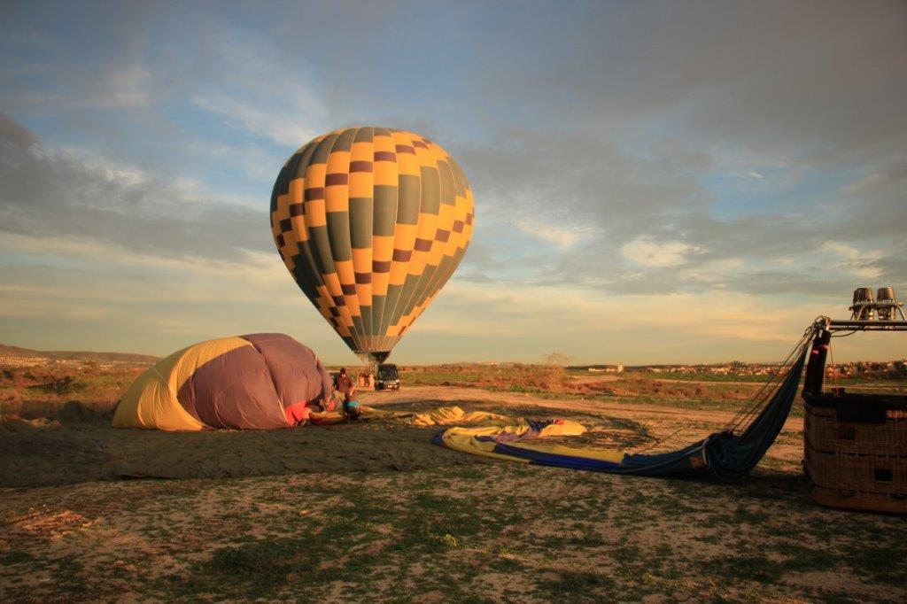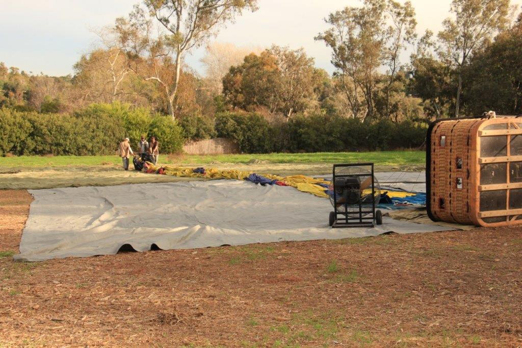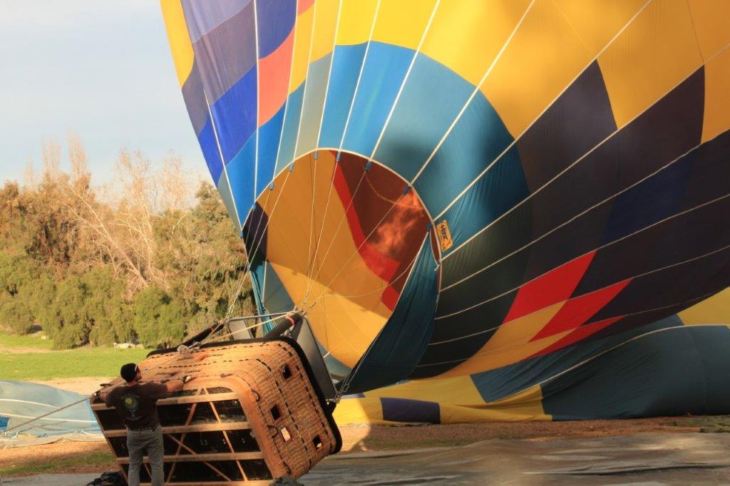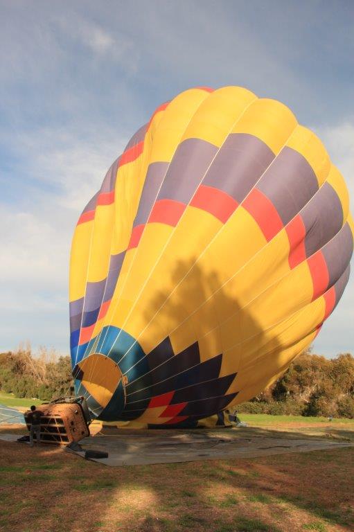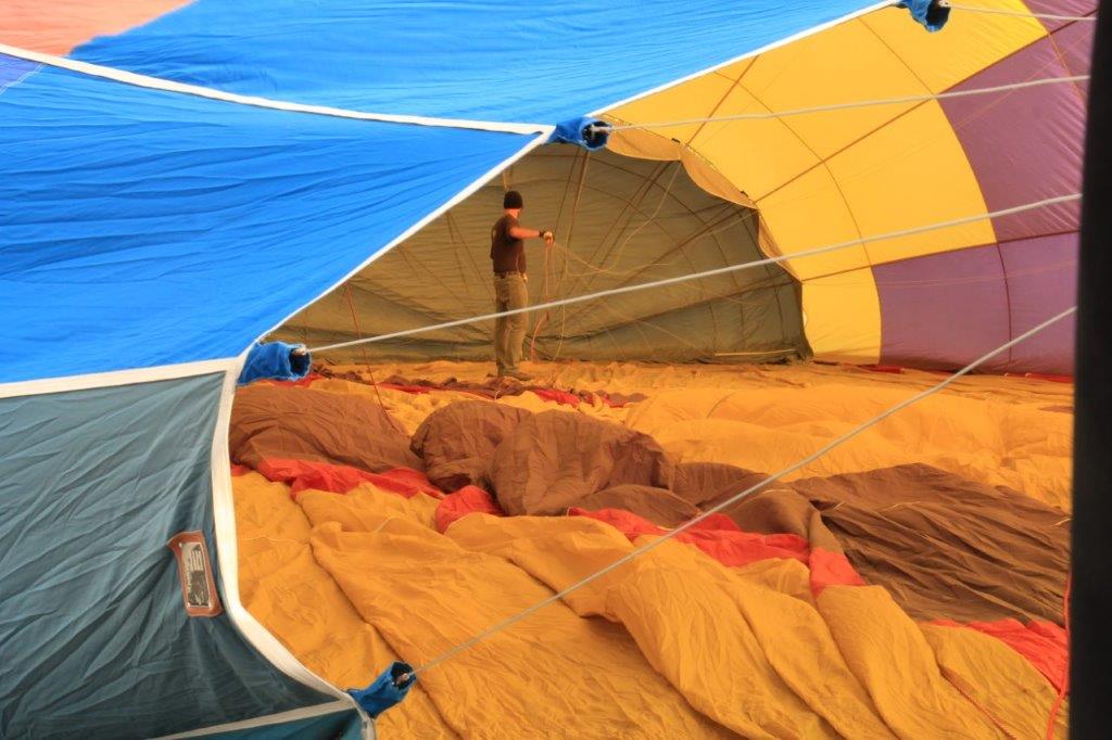 When it is all ready the gas from the tanks in the basket are turned on and the hot air fills the balloon which causes it to rise.