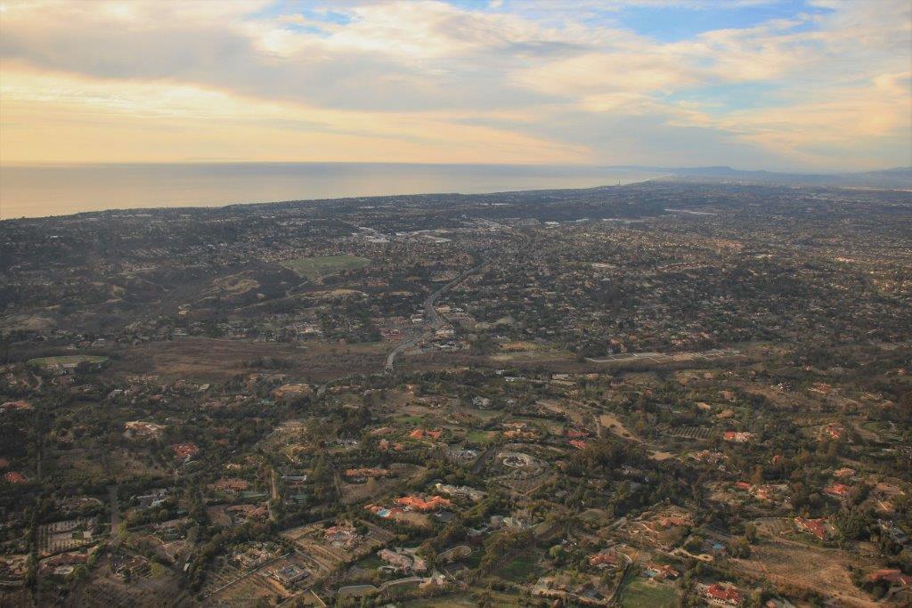 We reached a maximum height of 3600′ on our ride and had great views. The route took us over the swanky Del Mar area of the San Diego coast. The largest house in the area is 56,000 sq. feet. Many of those we flew over had to be 40,000 or so. There were swimming pools and tennis courts galore, riding stables and jumping courses, putting greens and massive landscaped yards. What a person needs all that square footage for I can’t fathom. Unless they are entertaining they probably live in about 4 of the rooms.