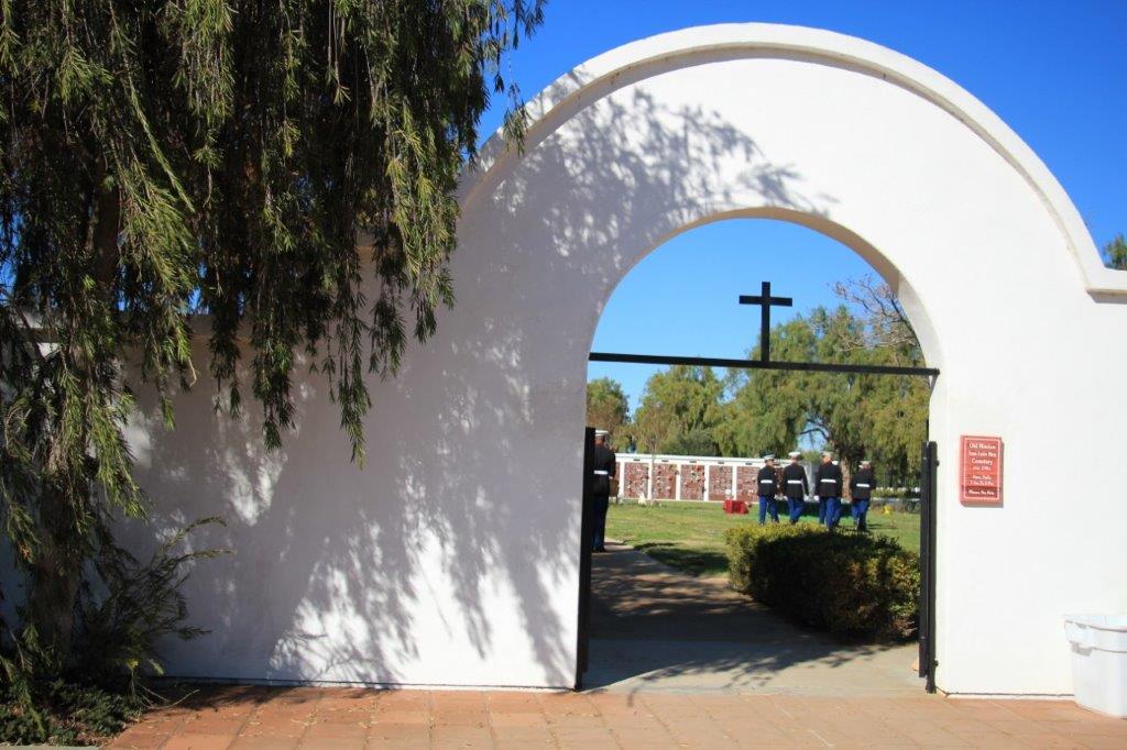 A sign on the wall in the museum mentioned that there is still an active cemetery here. I chuckled a bit at that; most cemeteries are not all that active. But people are still being buried at San Luis Rey. There is a large cemetery with family crypts, walls for cremated remains and grave plots. We explored the church as soon as we arrived and then went to the museum. When we came out of the museum we saw a hearse parked in front of the church and mourners in black wheeling a flag-draped coffin inside for a funeral service. When we went to look at the cemetery there were more than a dozen US Marines preparing to provide military honours.