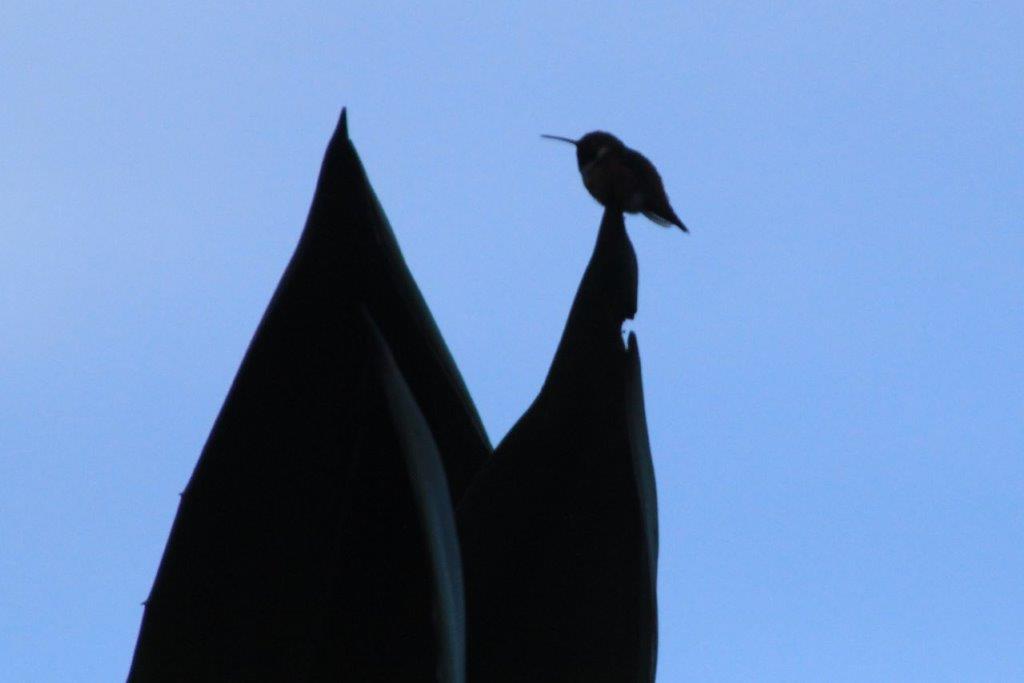 As we were walking past a huge Agave plant a couple pointed out this tiny hummingbird that was flitting around. I couldn’t get a really good picture of it; it wouldn’t stay still long enough that my camera could lock on a focus. As we were leaving the garden the couple called us over to their vehicle. They had a bird book and had looked it up. It was a Rufus Hummingbird, which is the smallest of the hummingbird species.