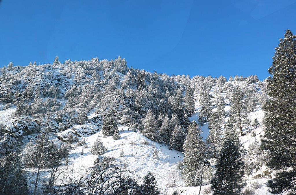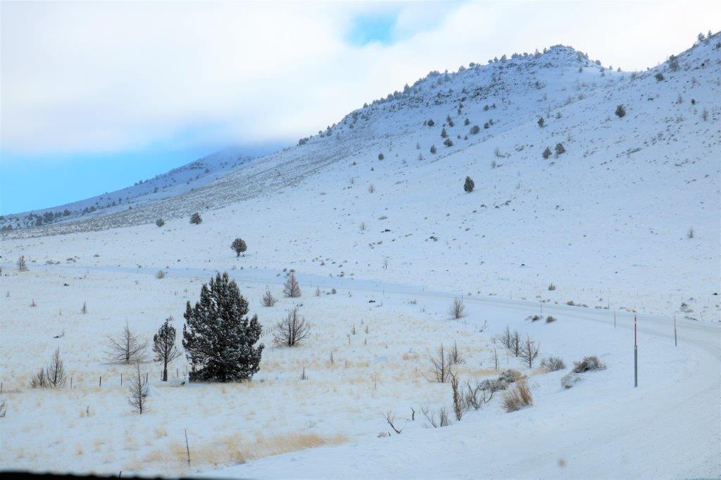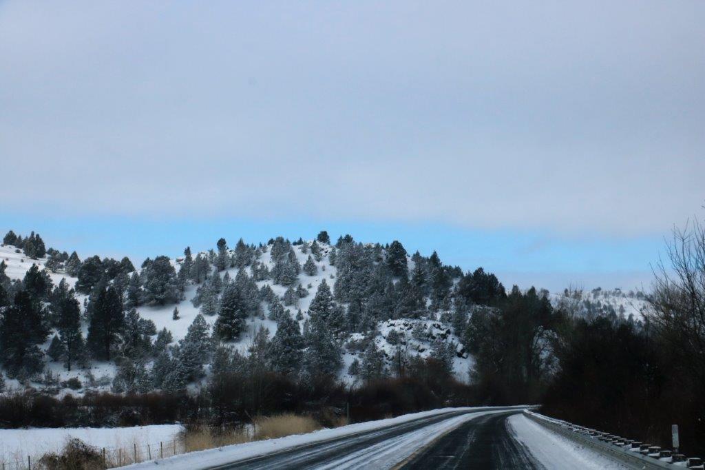 The snow that was falling when we returned to our hotel room last night in John Day thankfully quit not long after so we did not receive any nasty surprises this morning.