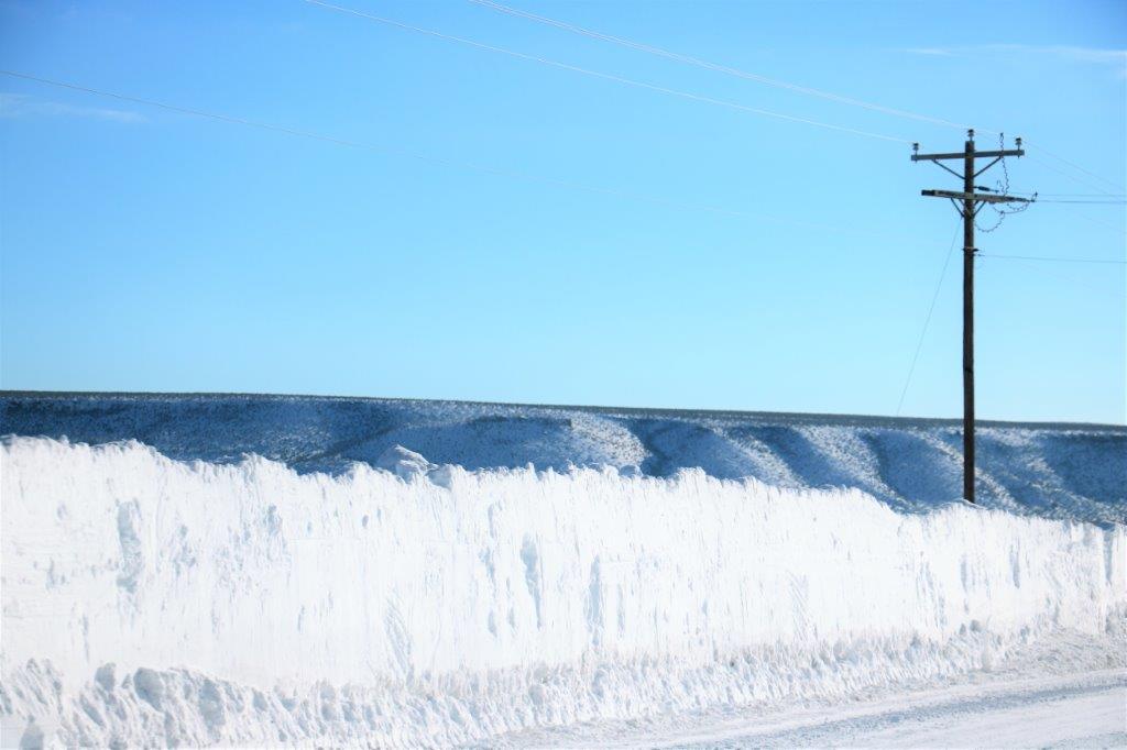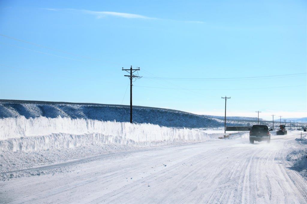 The drive through Crooked Creek Valley was flat, flat, flat with a straight-as-an-arrow road. It is so flat that the snow drifts in and covers the road. A crew was almost finished clearing a section that had drifted full of snow.