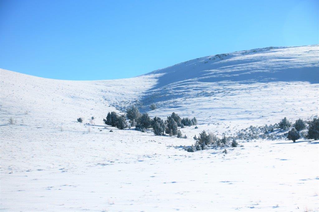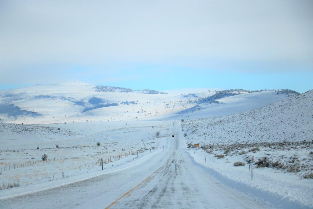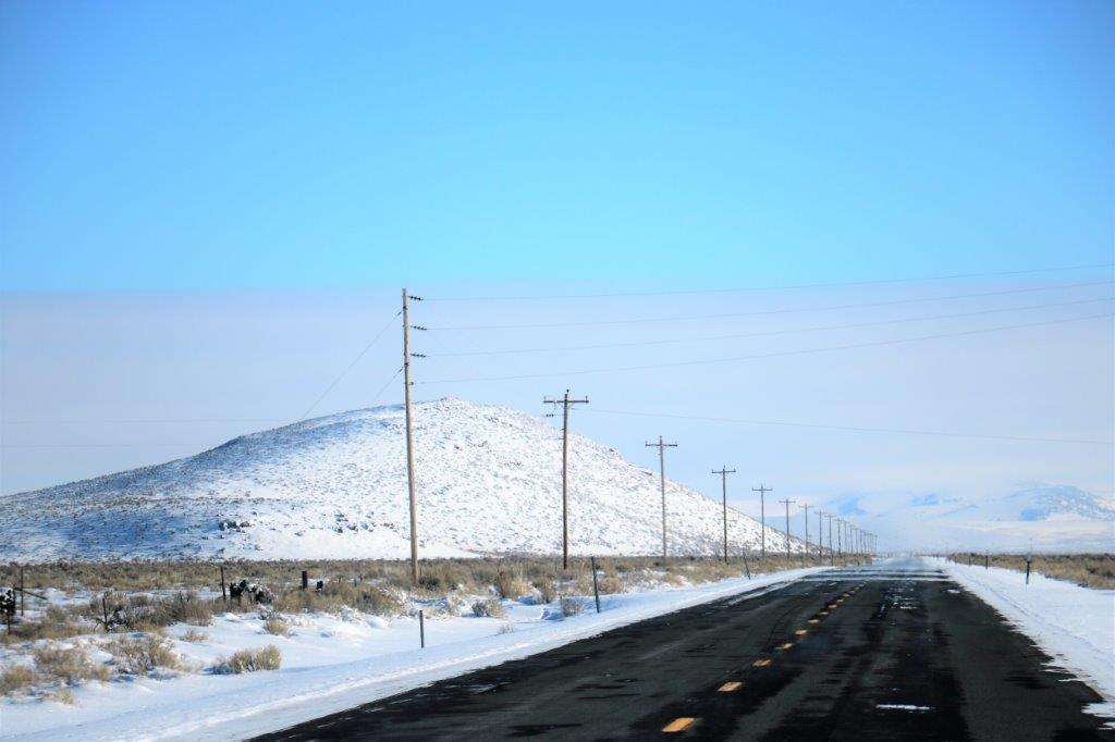 From Burns it is 55 miles to the Nevada border, and from the border it is 78 miles to Winnemucca and our stop for the night. The topography changed eventually from flat valley bottom to hills but it was still cold with a wind blowing and everything is covered with pristine, glistening white snow. We just are not far enough south yet. We’re getting there though.