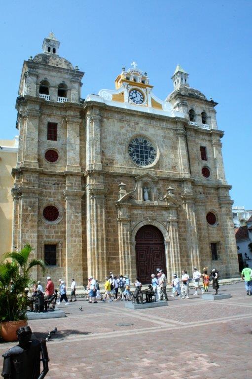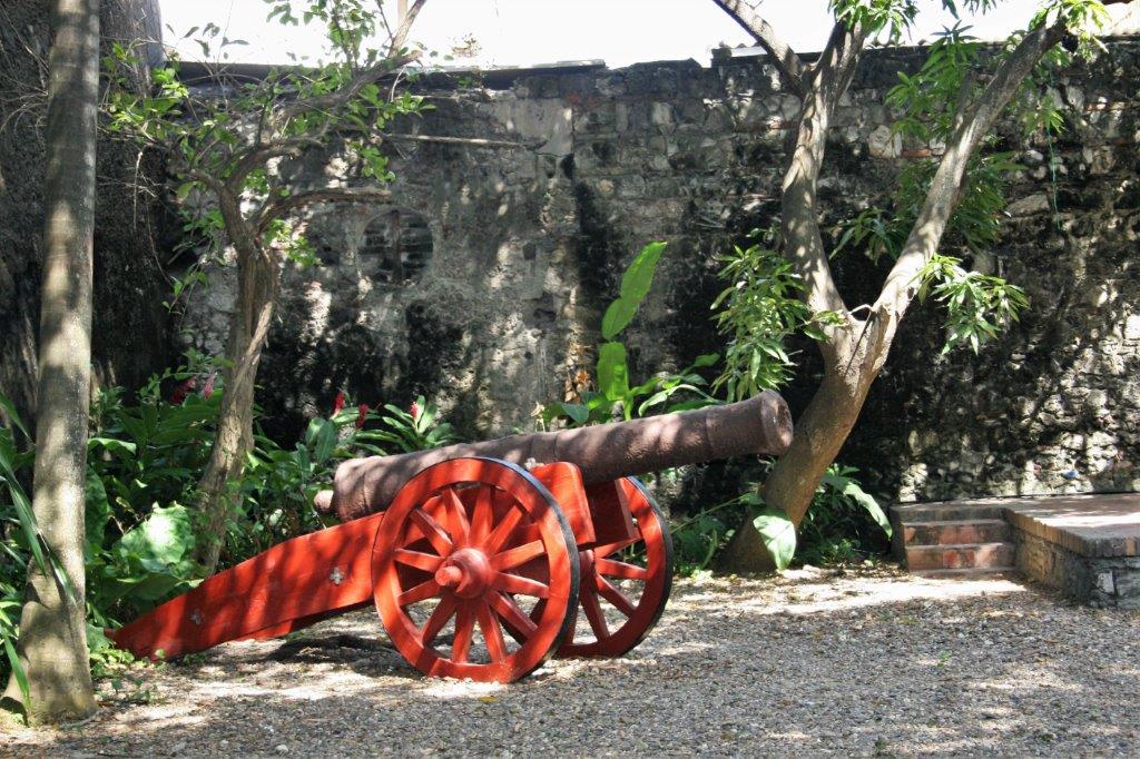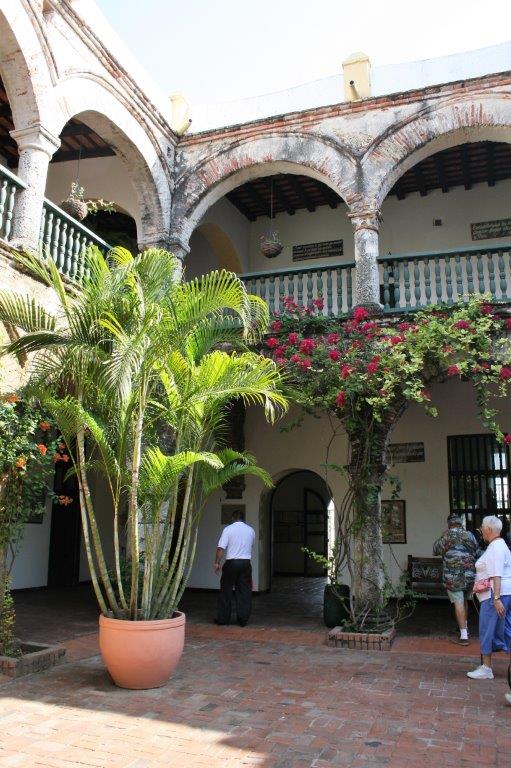 The first stop on our tour was Castillo de San Felipe de Barajas, a massive stone fortress that covers a hill 135 feet above sea level. it was originally built in the 1600’s and named after Spain’s King Philip IV. Over the years it was re-fortified and expanded. In front of the fortress is a statue of Don Blas de Lezo, a Spanish Admiral who defended the fortress and city from an attack by Great Britain in 1741. (If you look closely at the statue you will notice the empty right sleeve – hence the left-handed swordsman – and a wooden left leg. Don de Lezo lost these limbs in other battles and also lost an eye – brave and persevering fellow, I think.)