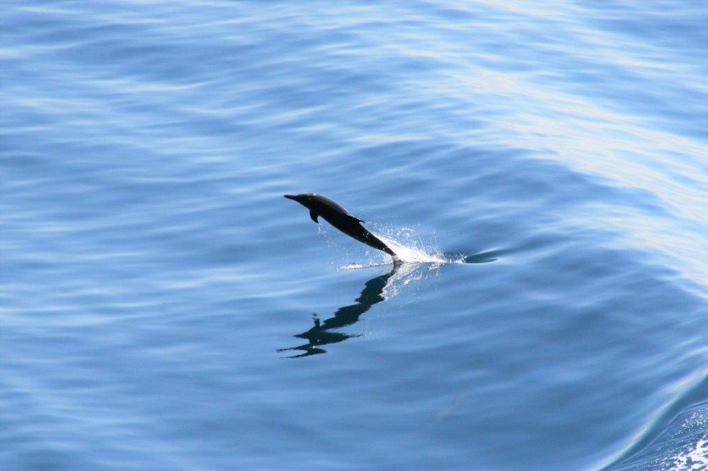 2009 World Cruise – The ship spent Saturday (Jan 10) slowly cruising along the Golfo Dulce coast of Costa Rica. This area is rarely seen by tourist as many of the beautiful, pristine beaches are set aside as breeding habitat for three species of turtle: the olive ridley, the Pacific green and the leatherneck. What we saw most of the day – which we spent on the balcony of our suite – was crystal clear, gorgeous turquoise water and a pod of dolphins that jumped and twisted and dove along and through the ship’s wake.