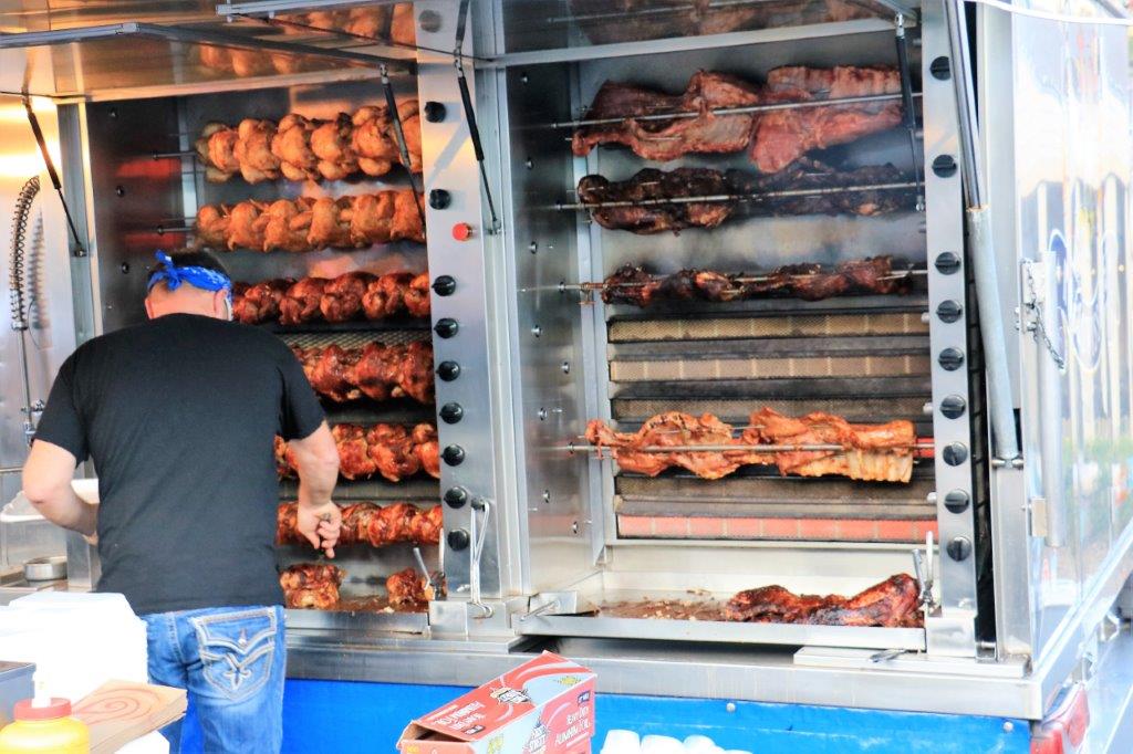 This fellow was doing a booming business. He also had huge pans cooking stir-fry veggies and potatoes. You could get a full chicken with veggies or coleslaw and potatoes for $15.