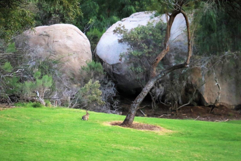 There are wild rabbits living on the grounds and we often see them crossing the path or on the lawn having dinner.