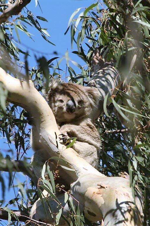 This cute koala was even awake in his tree perch. They live exclusively off the leaves of a few species of eucalyptus tree and rarely go to the ground. There is very little actual nutrition in the leaves so they are very low energy animals; sleeping about 20 hours per day. During the heat wave and subsequent bush fires there were many koala spotted on the ground getting some water from puddles or pools. Usually there is enough water in the eucalyptus leaves for their needs and they stay aloft in the trees.
