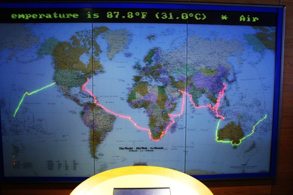 2009 World Cruise – Where we have been (green), where we are going (red).