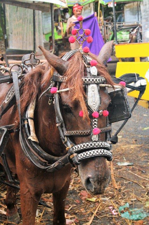 It was raining as we walked through the village learning about the pottery craft and we were thankful to get into the back of a ‘cimodo’ horse cart for a ride through the village.