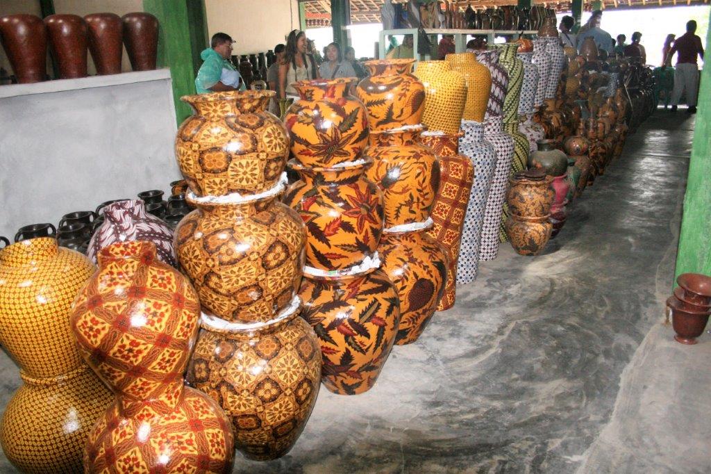 We visited a small village called Banyu Mulek where only the women hand-make pottery. The skill is passed down from mother to daughter. The men and elderly take care of the ‘kiln,’ which is a huge pile of leaves and rushes. The various colours of the pottery is produced by the different organic material used in the kiln’s coals. The women joined together to form a co-operative and have a large store where they sell their beautiful products.