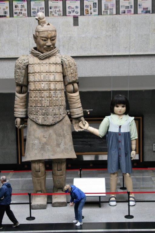 As we made our way to the warriors we passed these gigantic puppets. I think the warrior was always there, but the little girl was built for the Beijing Olympics and brought to X’ian after the games. She was one of the game mascots.
