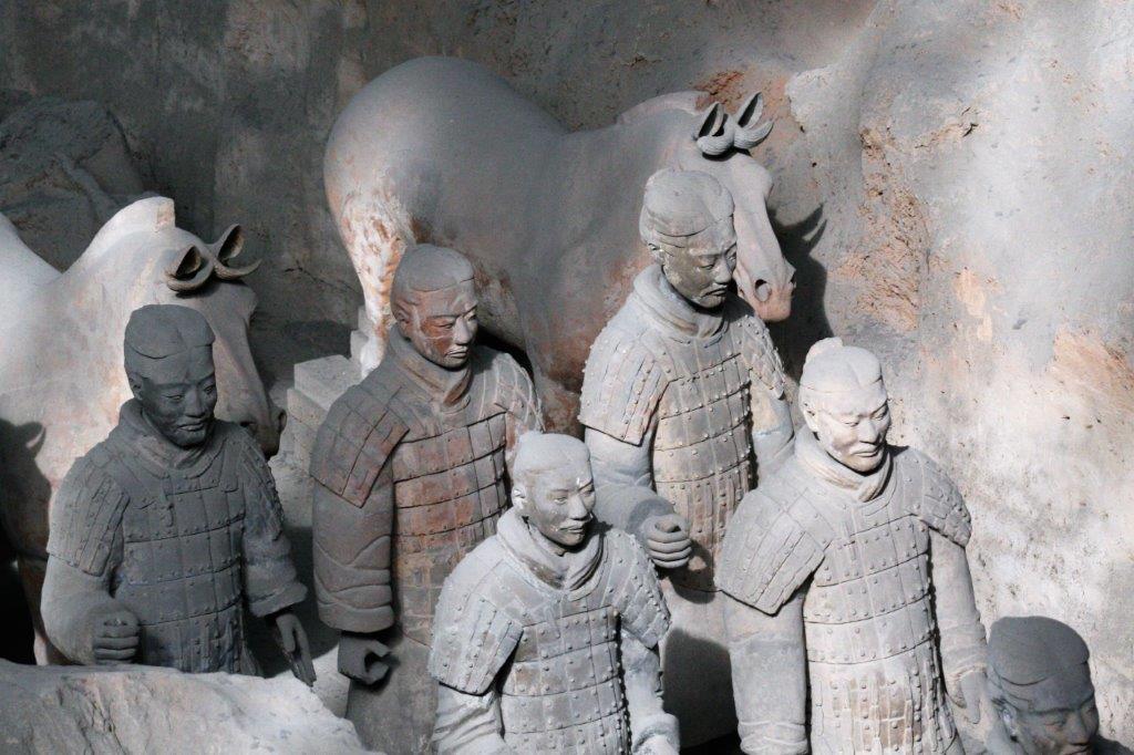 The emperor was afraid his enemy’s would follow him into the afterlife so he had life-size warriors, chariots, horses and riders made from clay and buried near his tomb. They were placed in regimental rows protected by wooden beams and a roof with water proofing reed mats above and brick floors below. They held real bronze swords, halberds, crossbows, spears and scimitars; most of which were looted not long after the warriors were buried. But over 40,000 items of weaponry (mostly arrowheads) have been discovered. And 2000 years after being buried the swords were not rusted and were still sharp due to a coating that had been applied to the bronze.