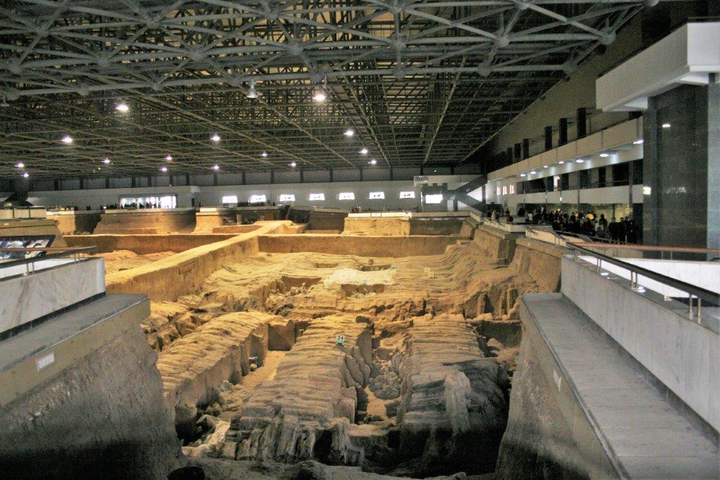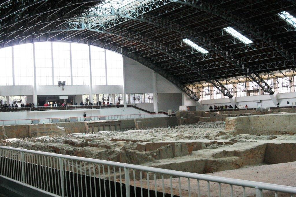 In order to protect the figures and allow access by the thousands of people who want to see them each year the three pits that have been extensively excavated had climate controlled buildings erected over them. Pit #1 building is 230 meters (750 feet) long and 62 meters (203 feet) wide. It contains about 6,000 figures.