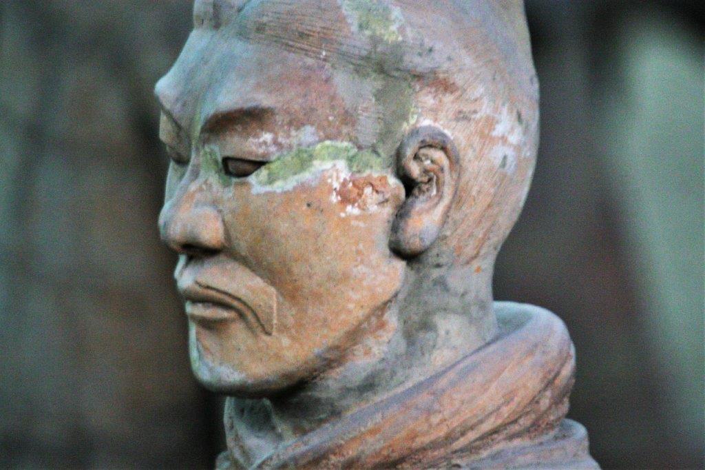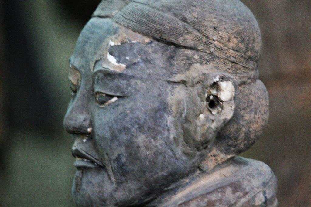 Over the years the wood rotted and the beams collapsed in many places and hundreds of the warriors were broken. It is a massive task to piece them together again. The bodies of the men were made from a few different posed molds yet every face is unique. They were originally painted in bright colours but time and moisture and exposure to air destroyed much of it.