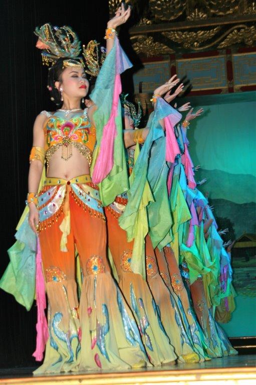 This concluded all the touring on our FIRST day in mainland China. But…..the day wasn’t over yet. We still had to have dinner and see the show before bed. Thanks to Jackie’s 500 mm lens I was able to get some close shots of the performers. And, just because I could, I took lots of photos of the show. Now, after all these years I am glad that I did because I get to see the beautiful costumes and sets again – and again.