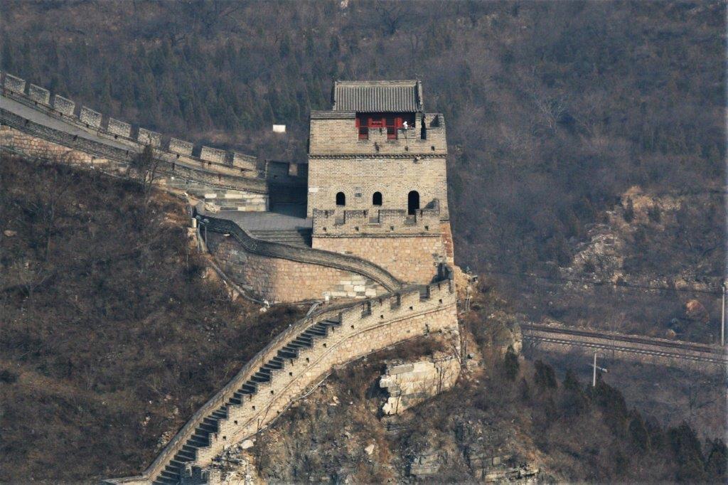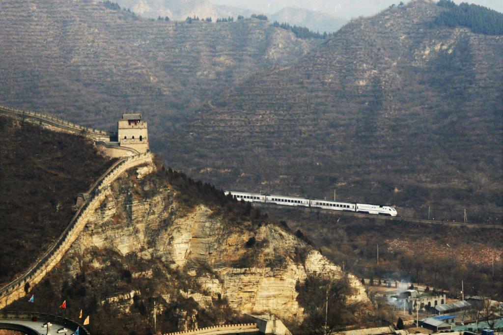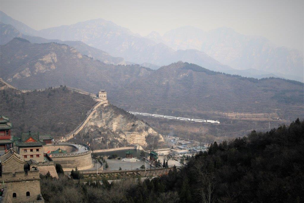 While we were coming down from the guard tower a bullet train went through the other side of the valley.