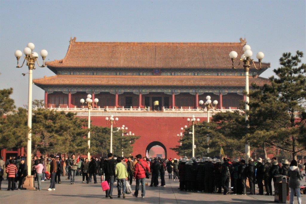 As we walked to the Forbidden City we passed the massive square (109 acres – one of the top ten largest city squares in the world) that is home to Chairman Mao’s Mausoleum, The Great Hall of the People, the National Museum of China and the Monument to the Peoples Heroes. Tian’amnen Square sits in the center of Beijing.