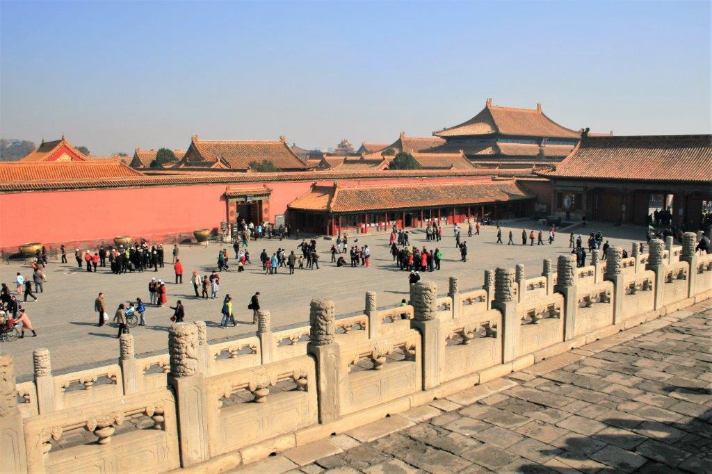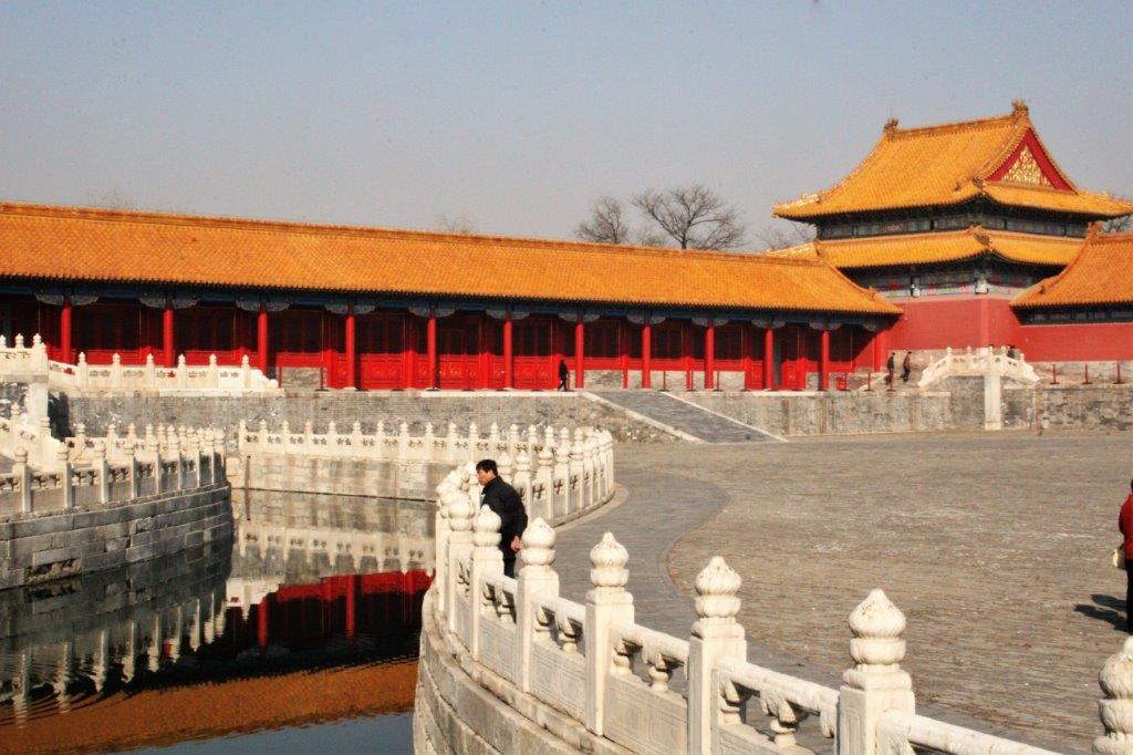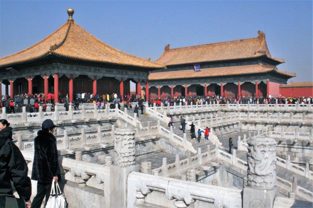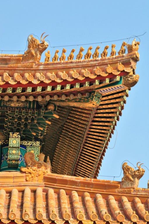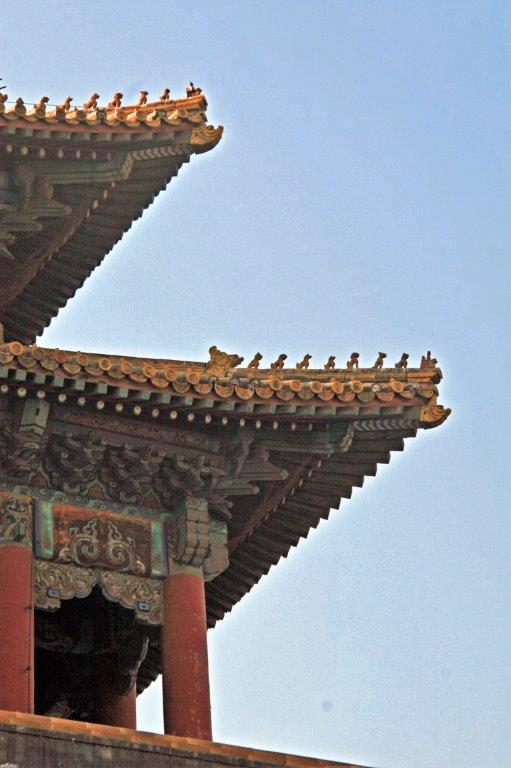 The Forbidden City was the Imperial Palace of the Ming (1368-1644) Dynasty (14 emperors) and the Qing (1644-1911) Dynasty (10 emperors). The palace building complex begins at Tian’amnen (Gate of Heavenly Peace,) centers on the Outer Court, and ends at the Jingshan Hill. Within the palace there are reputed to be 9,999 rooms and halls (some say the accurate figure is 8,886) in a total building space of 150,000 square meters covering an area of 720,000 square meters (180 acres). To build such a large ‘city’ within the city, the Ming Dynasty used the entire country’s manpower and material resources. A hundred thousand artisans and a million workmen were conscripted for the project and materials were gathered from everywhere in the country. It was built in just 14 years (1406-1420).