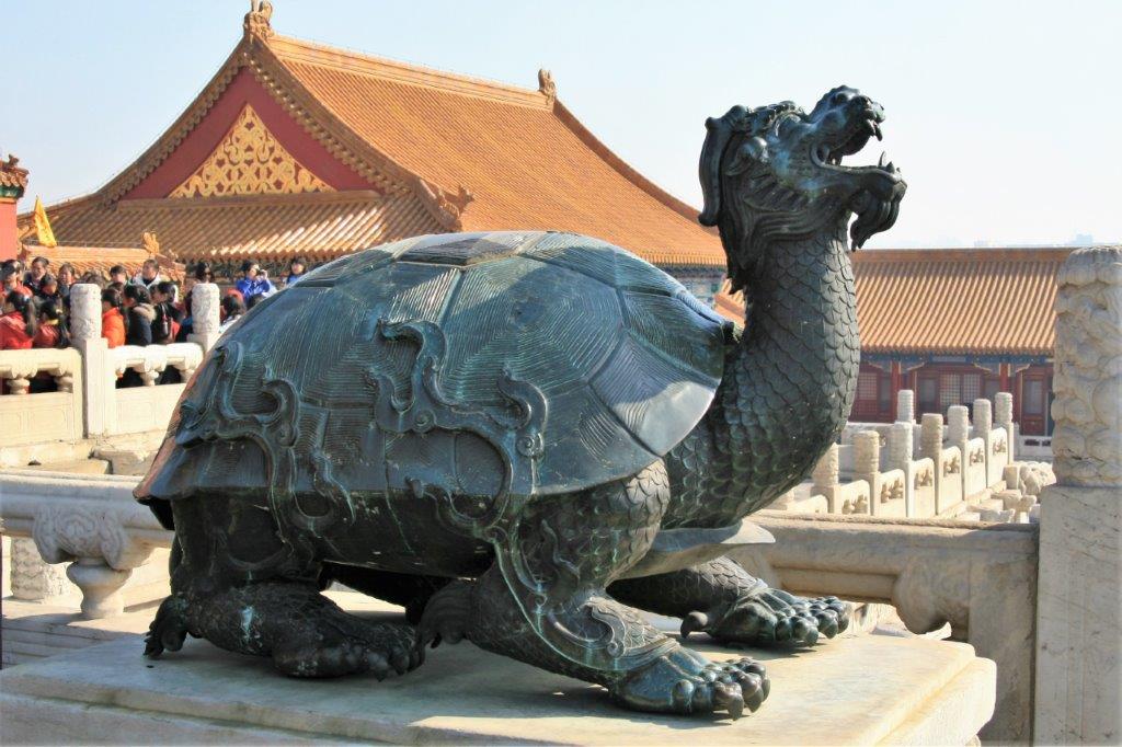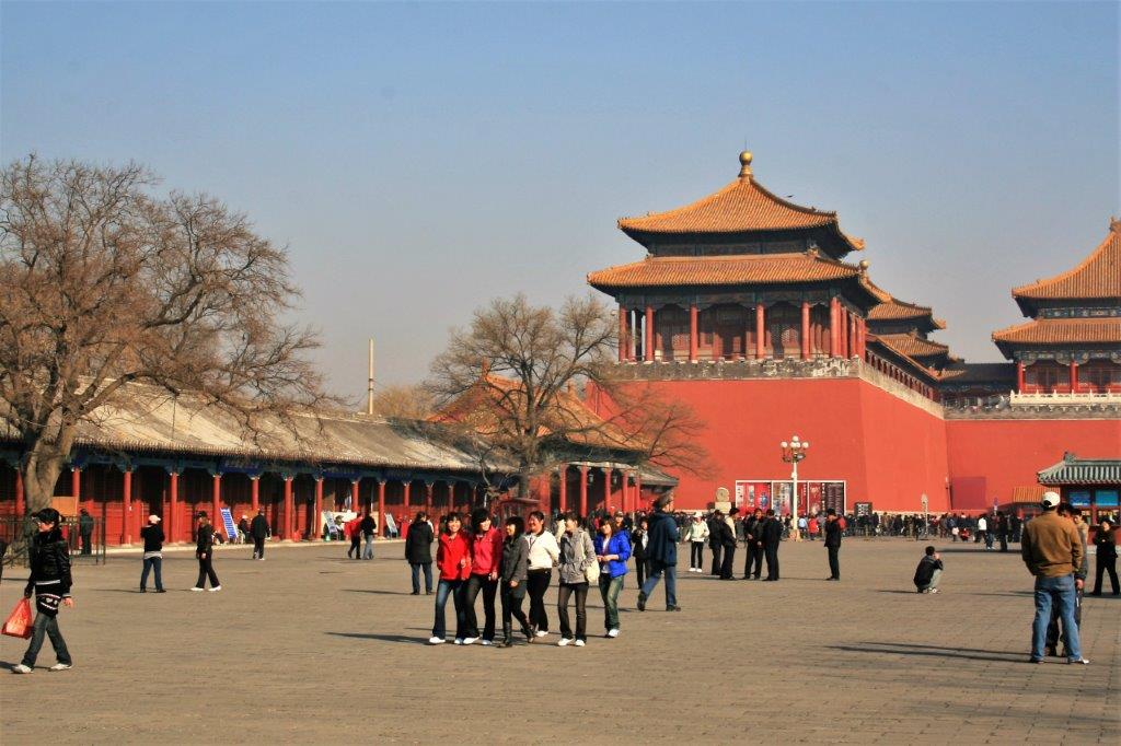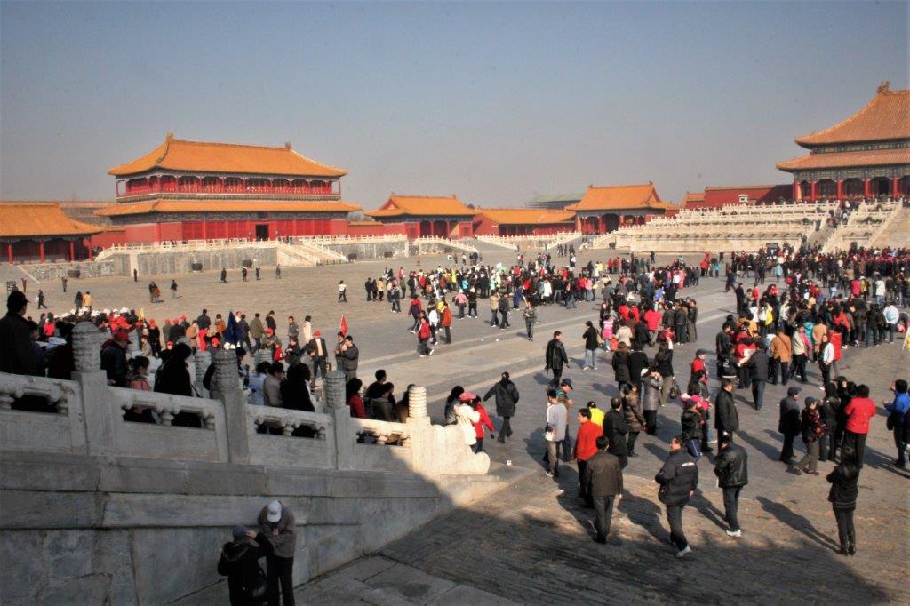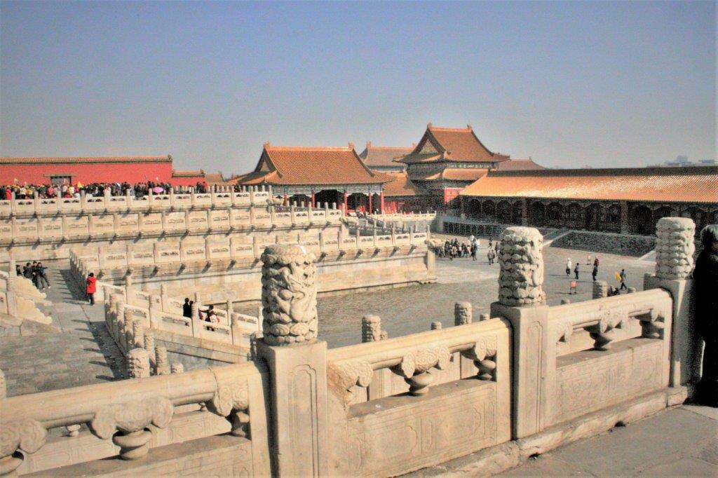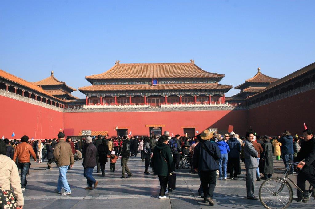 The Forbidden City was the Imperial Palace of the Ming (1368-1644) Dynasty (14 emperors) and the Qing (1644-1911) Dynasty (10 emperors). The palace building complex begins at Tian’amnen (Gate of Heavenly Peace,) centers on the Outer Court, and ends at the Jingshan Hill. Within the palace there are reputed to be 9,999 rooms and halls (some say the accurate figure is 8,886) in a total building space of 150,000 square meters covering an area of 720,000 square meters (180 acres). To build such a large ‘city’ within the city, the Ming Dynasty used the entire country’s manpower and material resources. A hundred thousand artisans and a million workmen were conscripted for the project and materials were gathered from everywhere in the country. It was built in just 14 years (1406-1420).