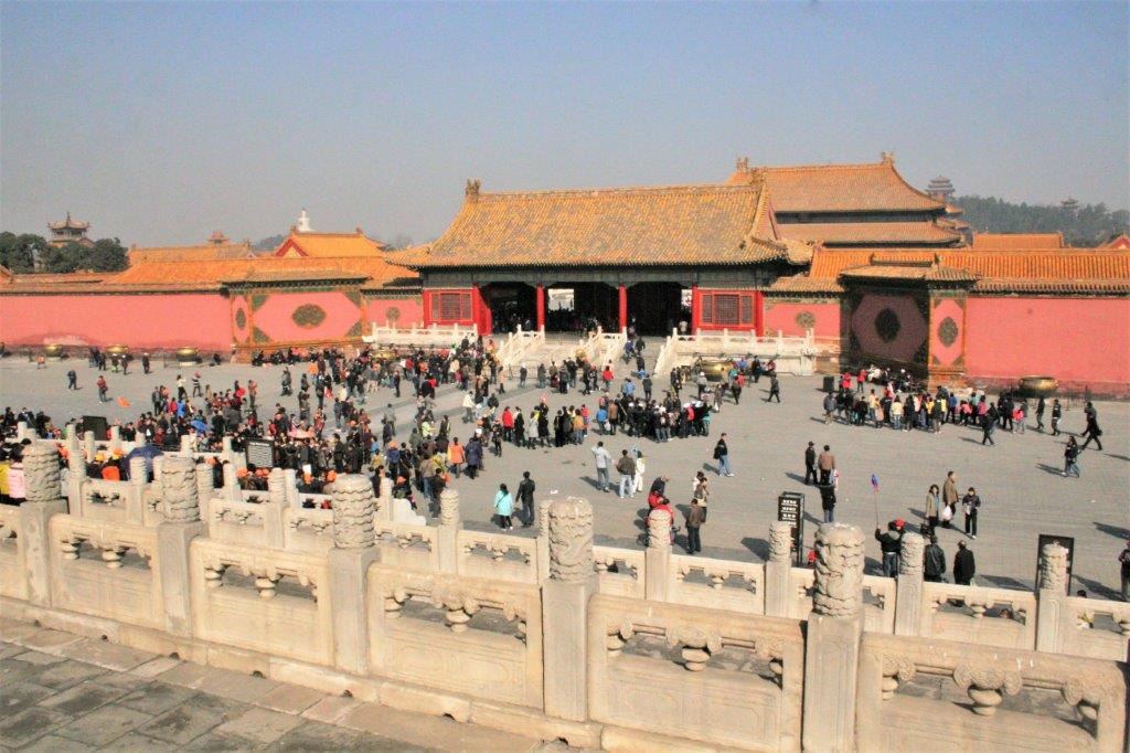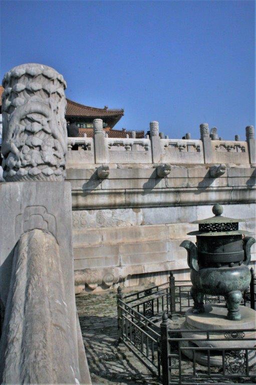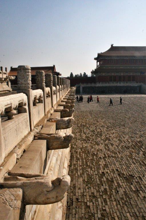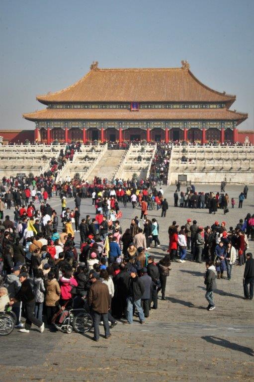 Thankfully at the Imperial City (aka Forbidden City) – now known as the Palace Museum – there were wheelchairs available for rent. Lin strongly encouraged our five slower folks to avail themselves of them as it was going to be a long, long walk. It took over 2 1/2 hours to walk through the middle! We did not enter any of the buildings but could meander over the various courtyards and terraces.