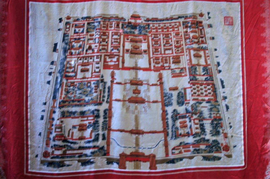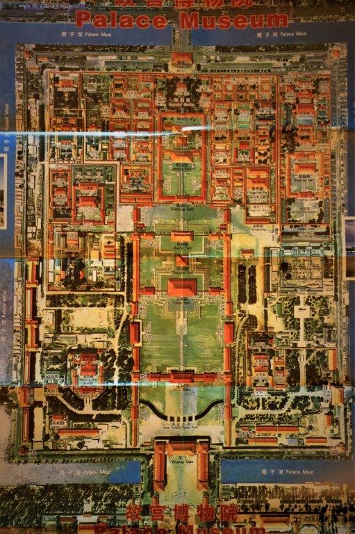 This is a photo of the brochure we were given. All of the red rectangles are the roofs of buildings. The entire complex is surrounded by a 10-meter-high (over 30′) and 3.4 kilometer-long city wall. Outside the wall is a 52-meter-wide (171′) and 3.8 kilometer-long (2.3 miles) moat which is 6 meters (20′) deep and has water in it all year round.