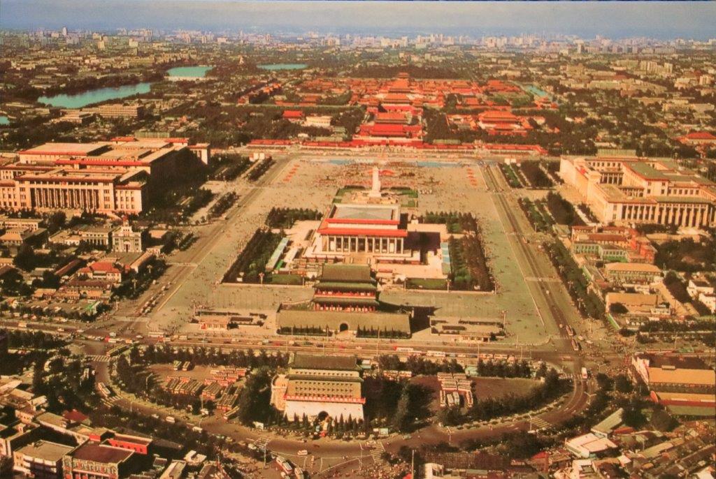 One of the things I have learned to do is buy postcards. Sometimes you just can’t get a photo of something. Sometimes it is too big or you need to have a different angle. You can usually find a postcard that fits the bill. These are two I bought that show Tian’amnen Square with the Tian’amnen Gate and the Forbidden City at the top end.