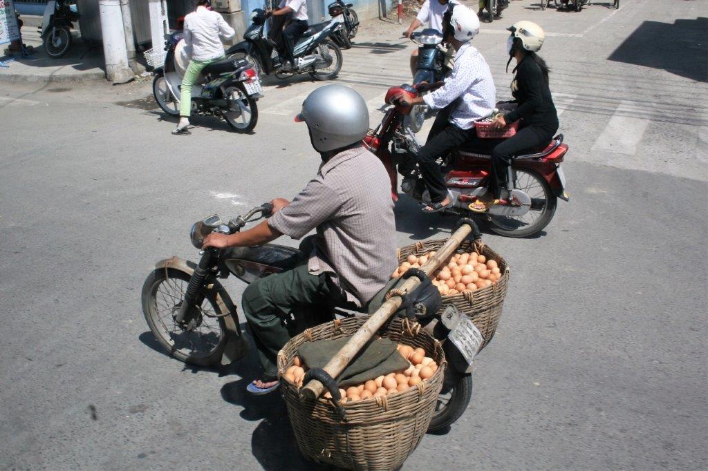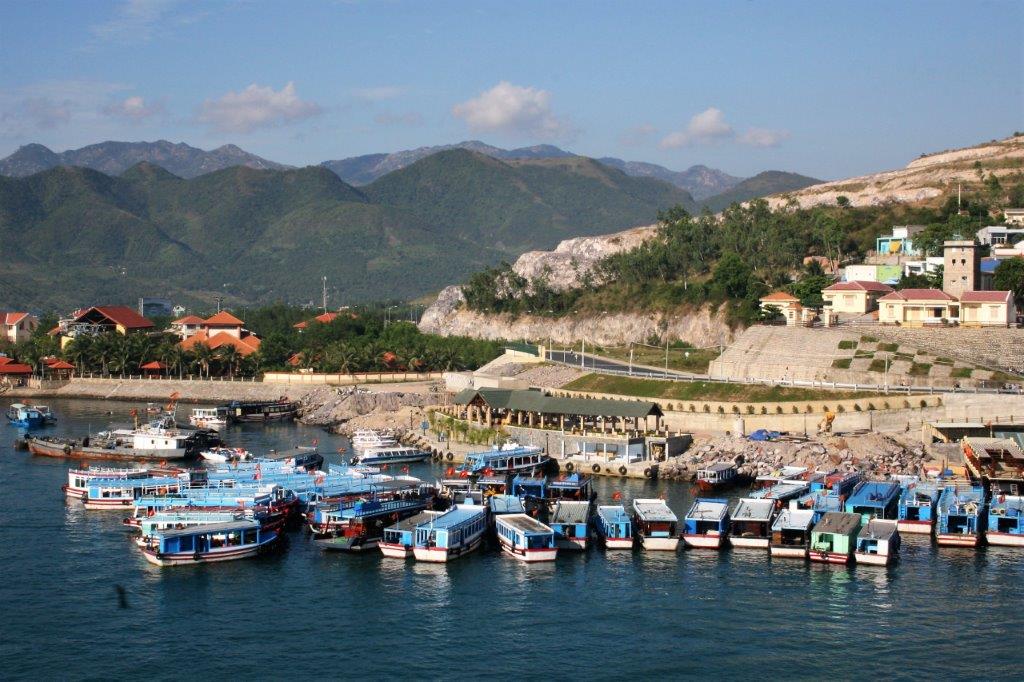 We have had quite a lot of rain and cloudy skies lately so it was very nice to wake up in Nha Trang and see lovely blue sky. All the blue, red and white boats in the harbour were very picturesque. Until a few years ago Nha Trang was a sleepy coastal fishing village. The government and private investors have transformed it into a thriving beachside resort-town with a gorgeous beach promenade several miles long. It is a very popular holiday spot for the Vietnamese and is gaining renown among international tourists as well.