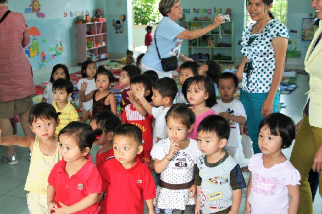 And, the most fun stop of the day was at a kindergarten. Again, the school would have been paid to allow this which helps pay staff and other costs to run the kindergarten. The kids were thrilled to see all these foreigners and had big smiles and blew kisses. So cute.
