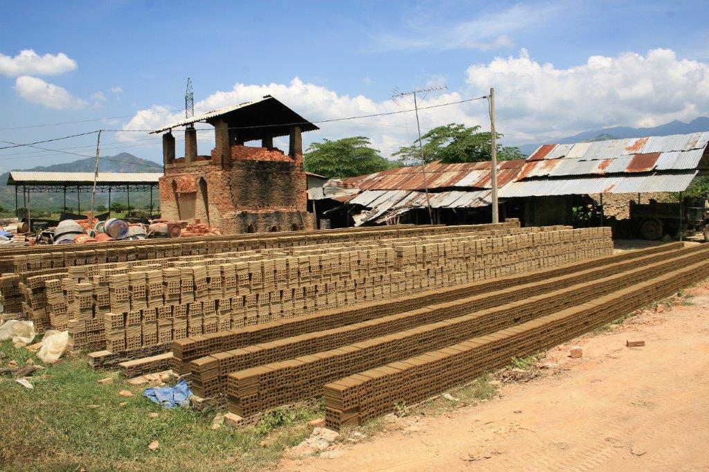 Our first stop was a farm on the outskirts of town where the women make mats out of rushes. The elderly folks help spin out the rushes into ‘thread’ and dye them the three main colours – red, green and yellow.