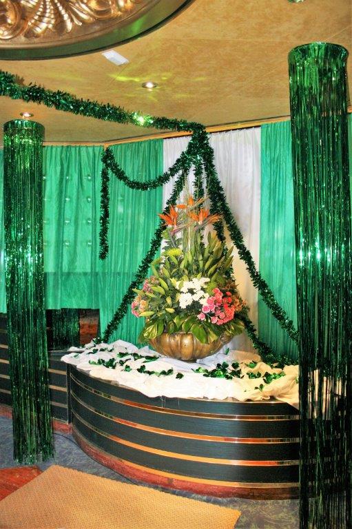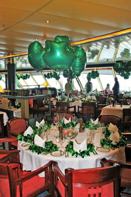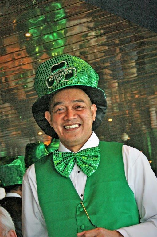 We had a day at sea after leaving Singapore and it was St. Patrick’s Day. The decorating crew did another bang-up job for our Emerald Isle formal night with an Irish inspired menu at dinner.