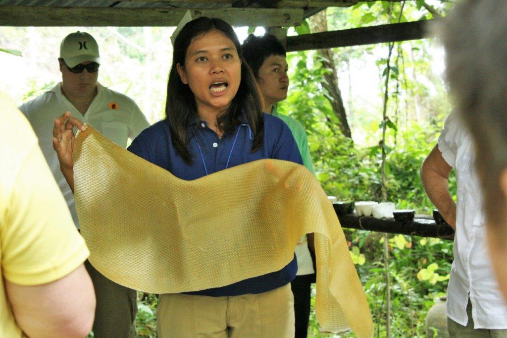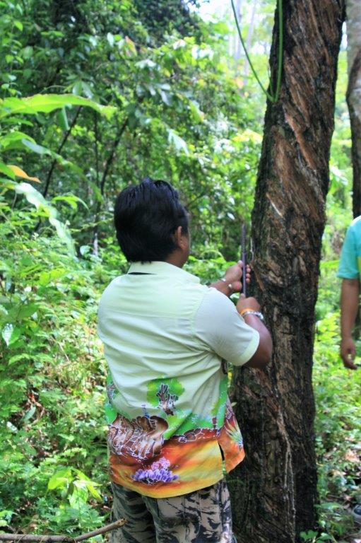 When we arrived we had a demonstration of how latex is harvested from rubber trees.
