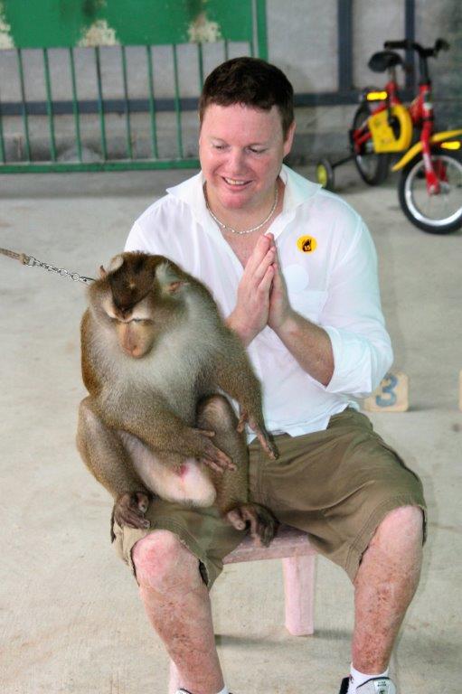 This was a fellow in our tour group who volunteered to be tied up so the monkey could untie him.