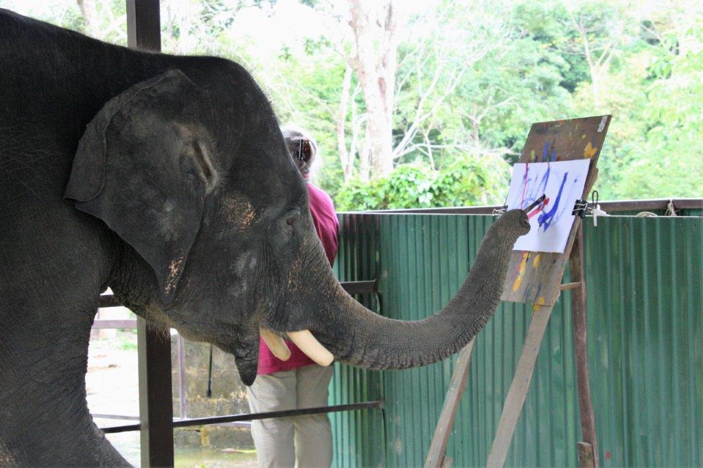 This baby elephant is 6 years old and she can dance, bow, play the harmonica and paint with water colours.