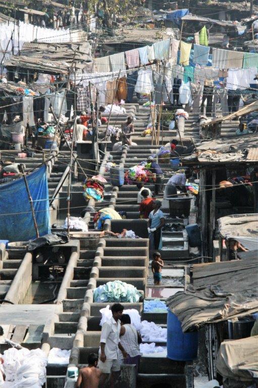 Laundry from all over Mumbai is brought here and soaped, soaked, boiled and beaten. They do the laundry for hotels and resorts, institutions like hospitals, factories, and private homes. The men have their own private tagging system that allows them to hang laundry from different customers together but can be separated later. As many men as are working in the laundry there are the same again going about the city collecting and returning laundry. Everything is washed, dried, ironed, and folded and returned in 3-4 days.