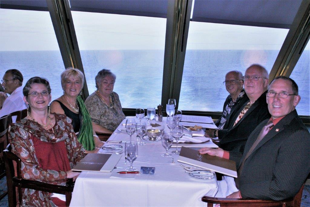 We spent the afternoon resting and reading. The next day was a sea day and was India Dress Night. I had found a nice outfit at one of the shops at the terminal so I was suitable attired for the occasion. Elaine also wore a lovely emerald green sari. I’m not much of a fashionista, but it was fun to wear different national attire as we traveled around the globe.