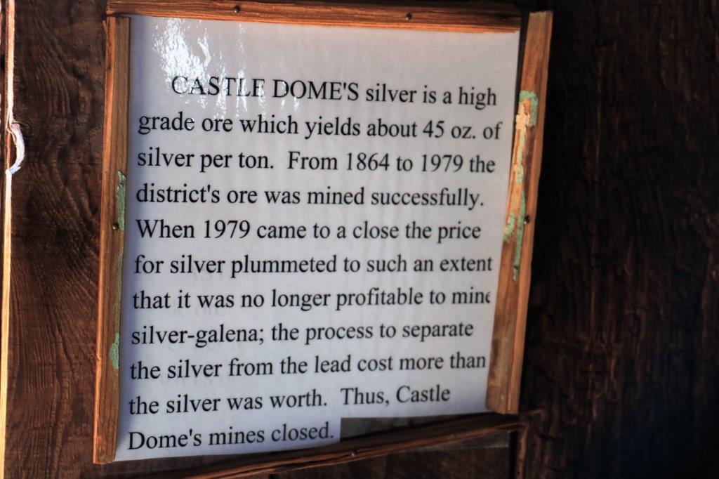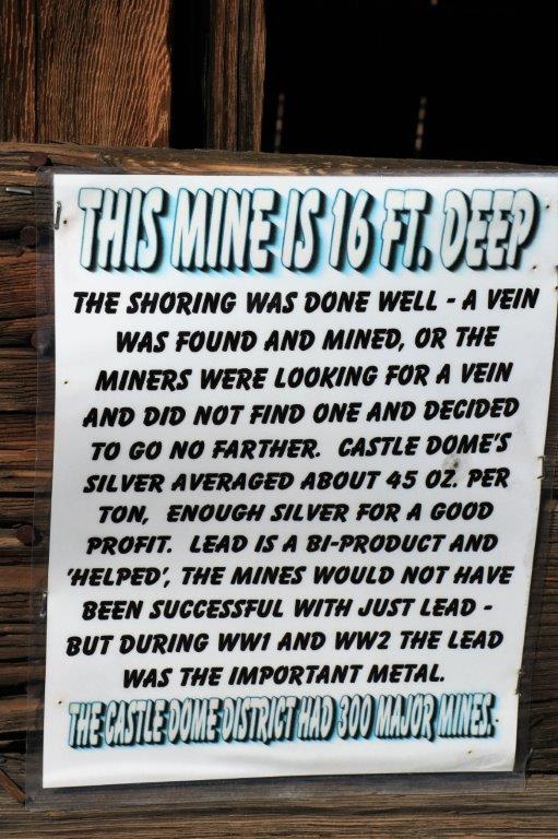 The Castle Dome Museum is an old mining ghost town. In the late 1800’s it was a booming silver galena and lead mining area with over 300 working mines; some as deep as 450′ vertical shafts into the rocky desert. There were mines being worked up to 1979 when the price of silver went so low it was not viable any longer. We wandered in and out of the buildings for most of the day.