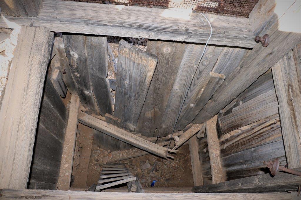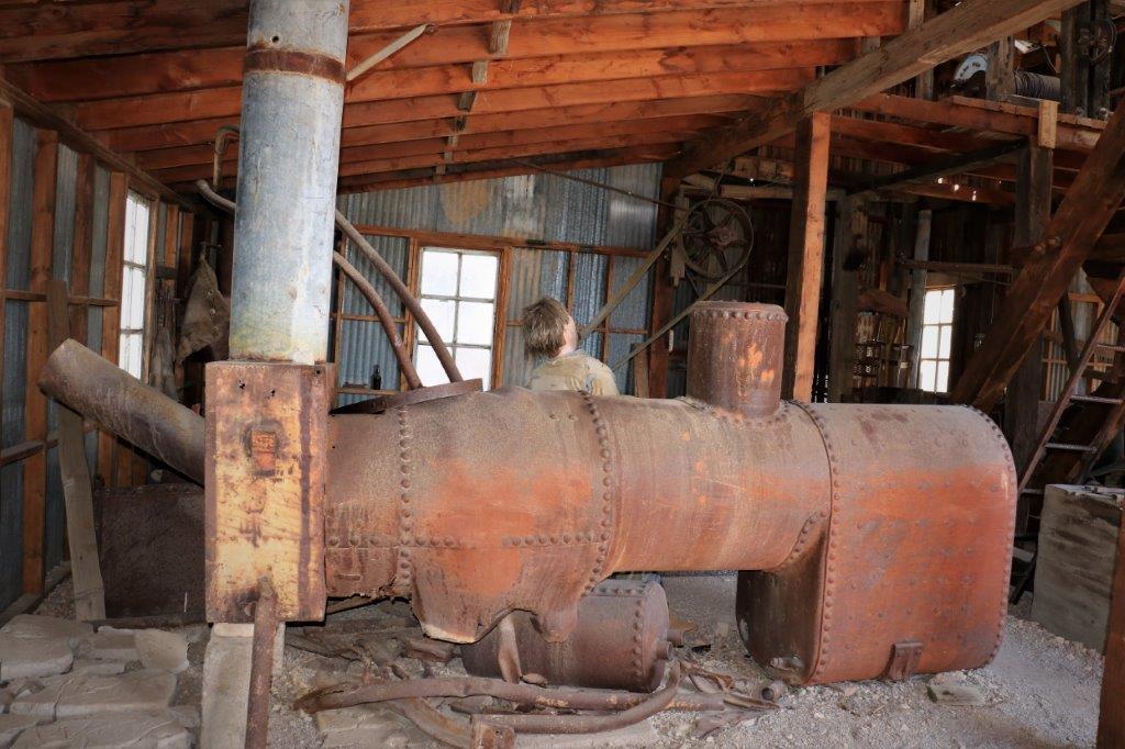 This was the crushing mill where the rock was broken up to get at the ore. The old steam boiler had a huge hole it from when it exploded.