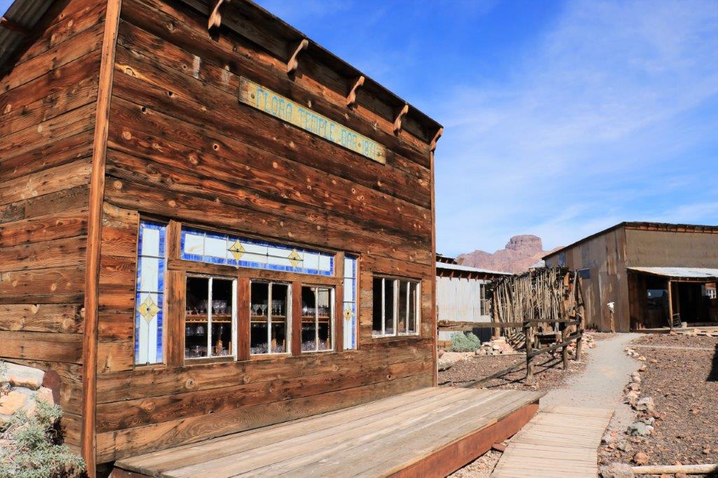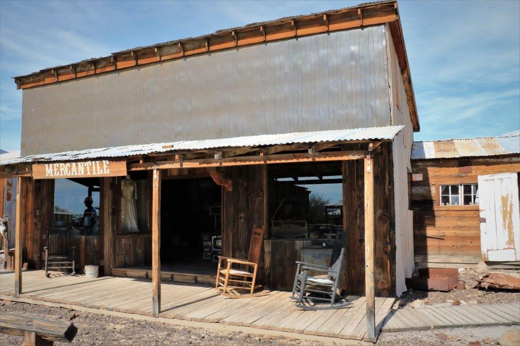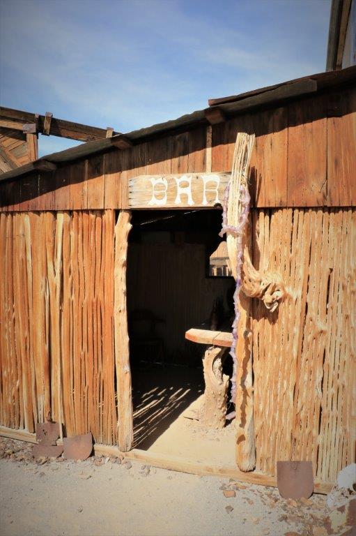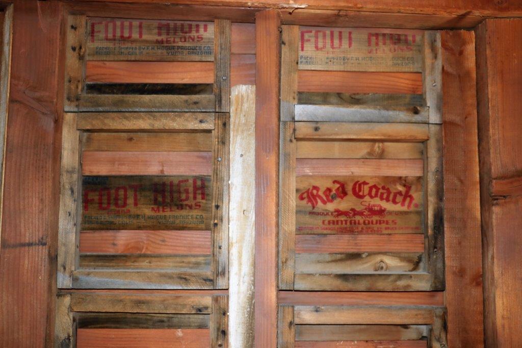 When you build a town in a desert you use whatever wood you can find. Many of the walls were made from old fruit boxes or blasting powder boxes.