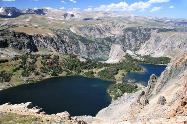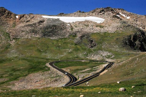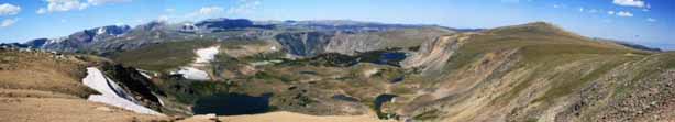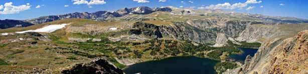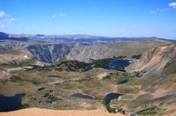 After we finished at the zoo and gardens we headed southwest to the Montana-Wyoming border and through another high winding mountain pass. The summit of Beartooth Pass is 10,947′ above sea level and, like the Going-to-the-Sun Road through Logan Pass, is only open from mid-May to mid-October. Because of the high elevation snow storms can occur even in mid-summer and the pass is notorious for high winds.