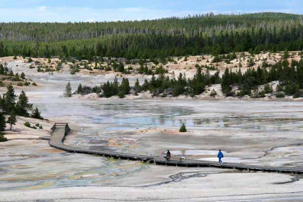 Our first day at Yellowstone was spent walking the 2 miles of boardwalks and trails at Norris Geyser Basin, which is the hottest and most changeable area in the park; primarily because three volcanic fault lines intersect there (one of the faults had an eruption of 7.4 on the Richter Scale in 1959).