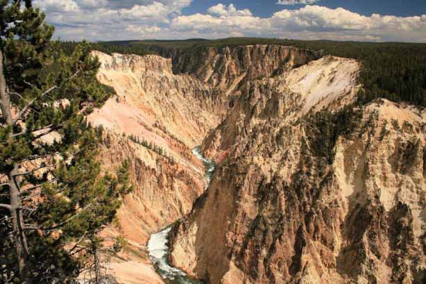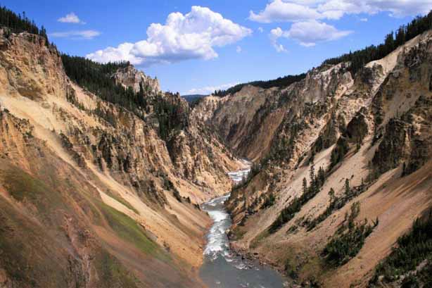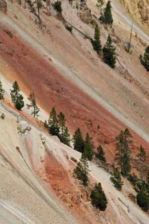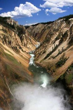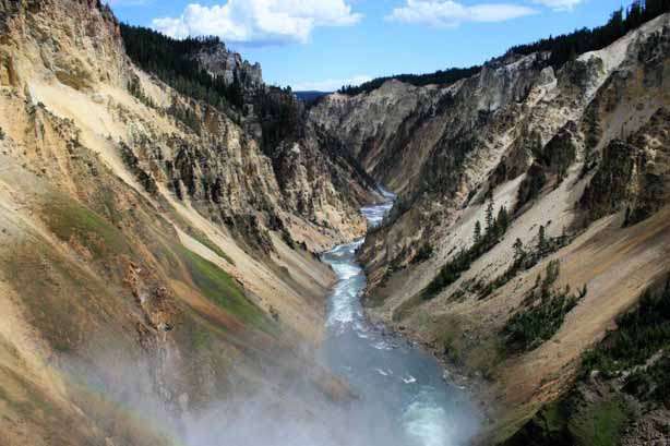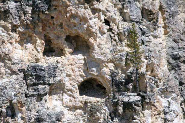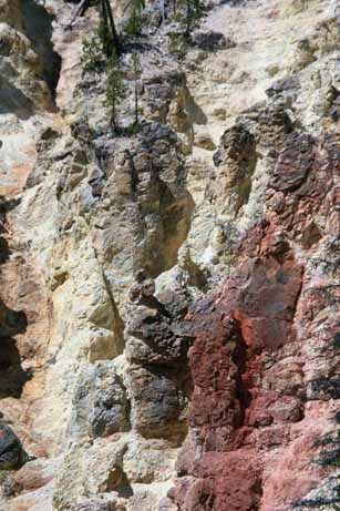 The canyon area, at one time, was a geyser basin resulting from rhyolite (igneous volcanic rock) lava flows, fault upheavals and heat beneath the ground surface. The actions of chemicals and heat in the geyser basisn caused the rhyolite rock to be thermally altered, makig it soft and brittle and more easily eroded. The Grand Canyon of the Yellowston was primarily formed by an accelerated erosion of the softened rock, rather than by receding glaciers like most other canyons.