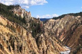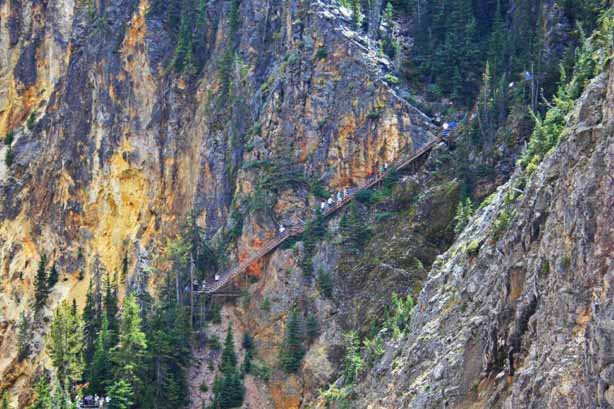 There is a steep stairway on the opposite side of the canyon that will take you to the river below the Lower Falls. The stairway is called Uncle Tom’s Trail after a fellow named Richardson who was known as Uncle Tom. He operated a ferry across the Yellowstone River in 1890 that took tourists down into the canyon below the lower falls. The original trail down the canyon wall no longer exists but the staircase bears the same name.