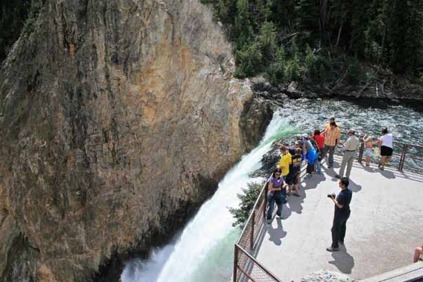 The view point at the top of the Lower Falls is literally beside the crest of the waterfall.