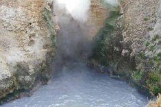 Dragon’s Mouth Spring was so hot you could hardly stand close enough to the opening to get a photo.