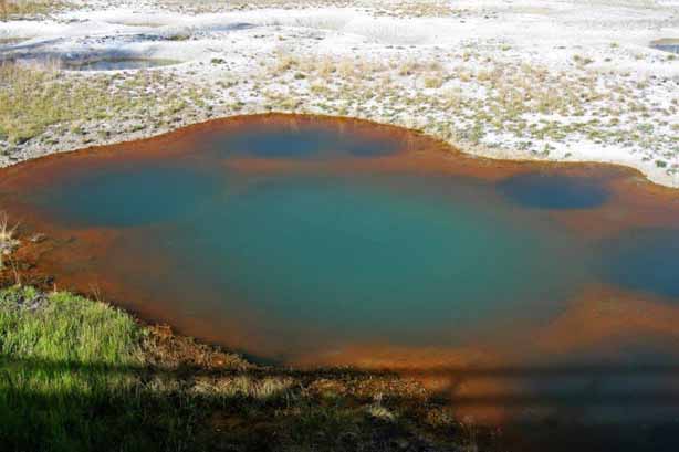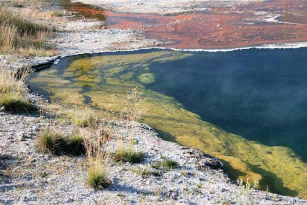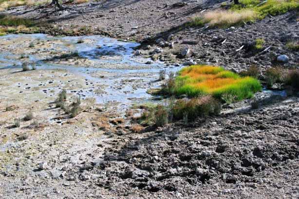 There was a patch of grass at Mud Volcano that was so bright and colourful it looked like it was under a special light or had been painted, but it was exactly these colours – must be the chemicals in the soil and water.