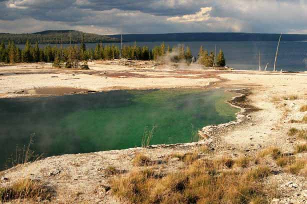 Not far past Mud Volcano you reach the north end of Yellowstone Lake and follow the lakeshore around to West Thumb central basin.