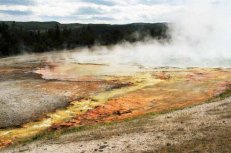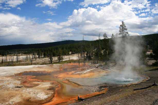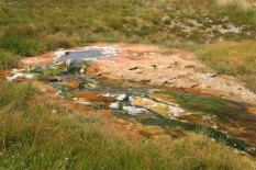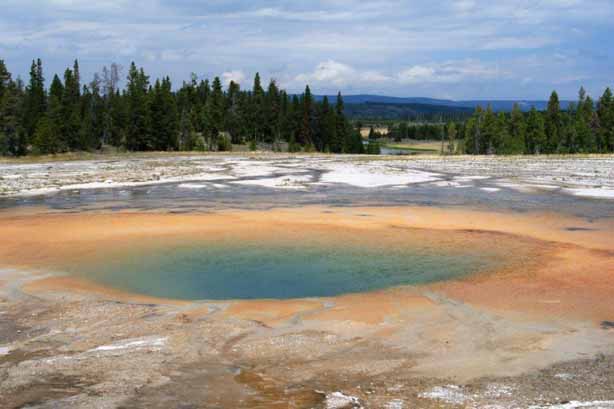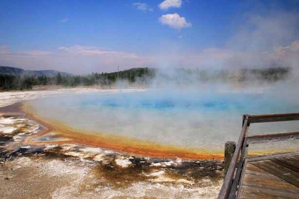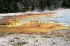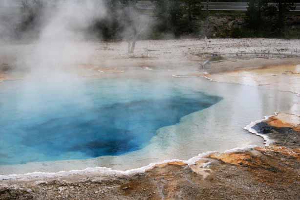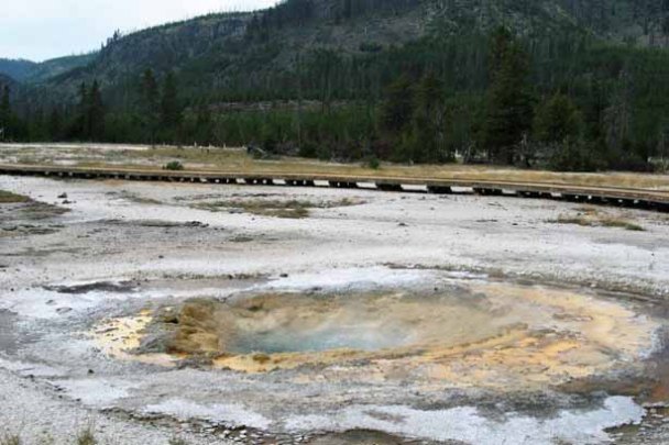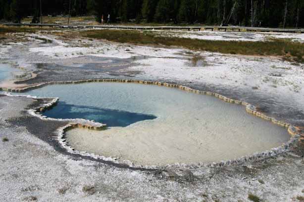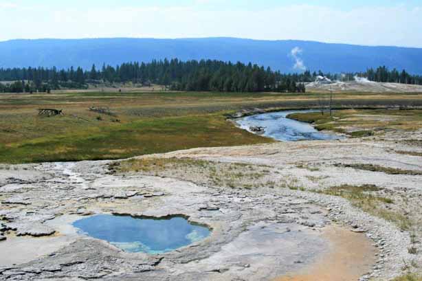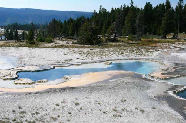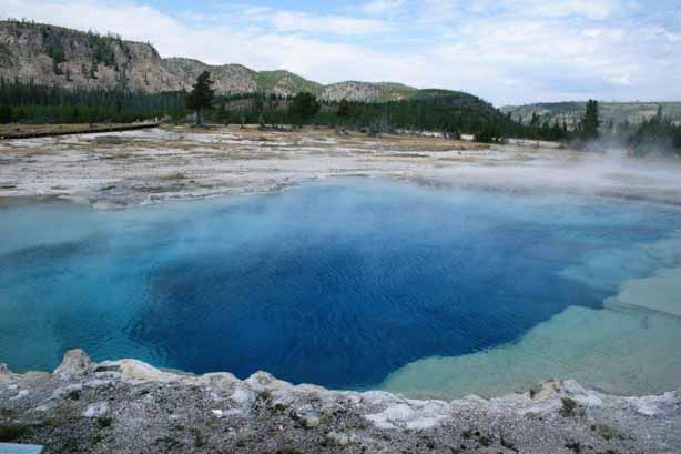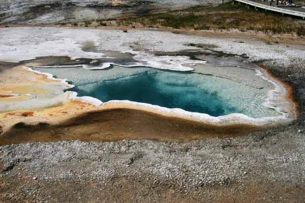 At the northern end of Upper Geyser Basin is Biscuit Basin. There is a short boardwalk trail past several pools, springs and geysers.